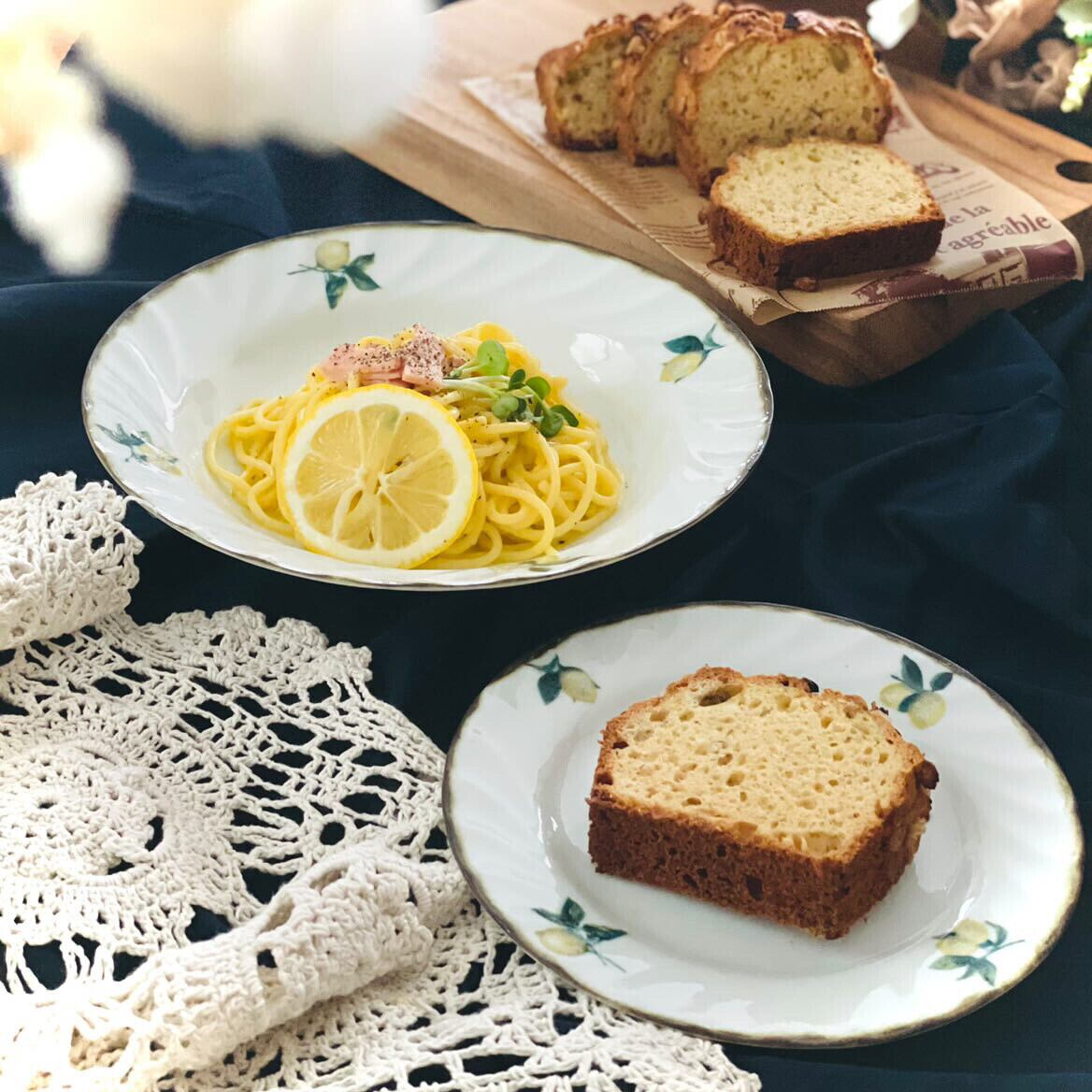 レトロな雰囲気のウェーブの形に、使い込んだかのような釉薬のフチ取りとシャビ―なレモンの柄が海外のヴィンテージ食器を思わせるデザインです。